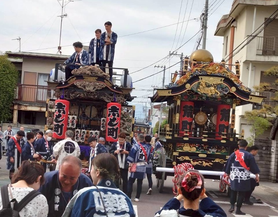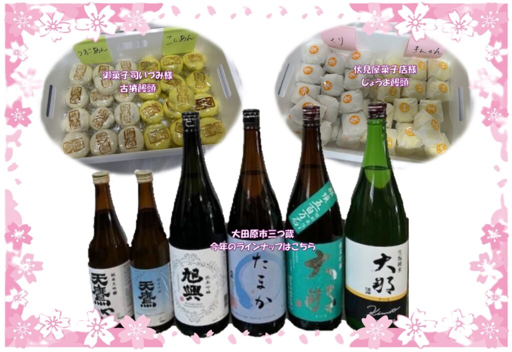 また、宵祭りとなります4月18日(土)には那須土木前にて5~6台の屋台ぶっつけが行われましたそれに併せて、弊社より大田原市内酒蔵の日本酒と市内の菓子店の饅頭のお振舞いをいたしました。